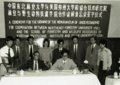 1977~1991年间,学校共接待来校参观访问学者近百批,计1221人次,专业外语阅读课由单一的俄语增加到英语和日语。从1982年开始,学校连续聘请外籍语言专家和教师,为学校的青年教师、英语专业的学生和硕士、博士研究生开设课程。1983年起,学校先后与美国的俄勒冈州立大学、耶鲁大学林业与环境研究院,日本的北海道大学,加拿大的纽布兰斯维克大学等签订了校际合作备忘录或协议书。