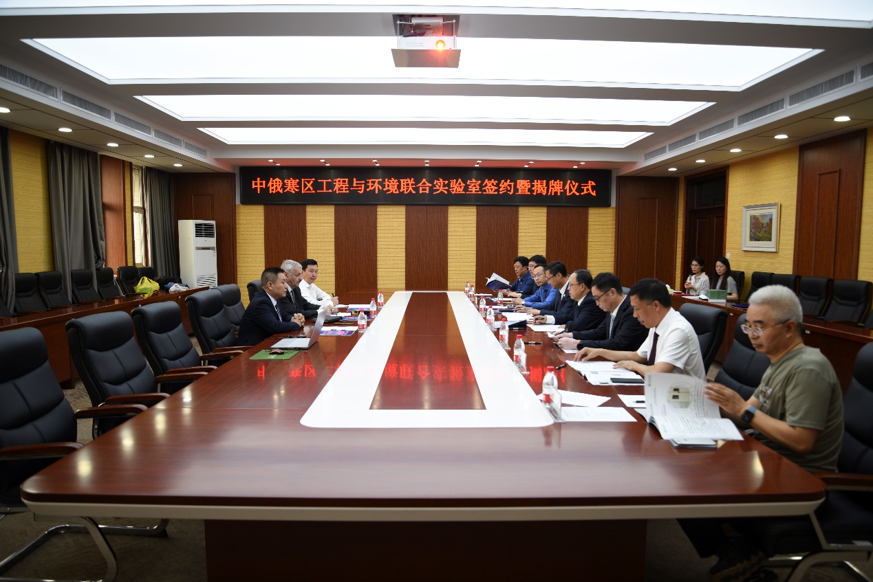 宋文龙与热烈兹尼亚克签署了共建实验室协议。今后双方将依托中俄寒区工程与环境联合实验室,共同开展寒区工程致灾机理研究及防治措施、多年冻土退化背景下寒区生态环境演变;寒区地下水与冻土和地表水的互相影响;寒区材料科学等领域以及相关研究,共同促进及发展寒区科学信息及数据库的建立。
